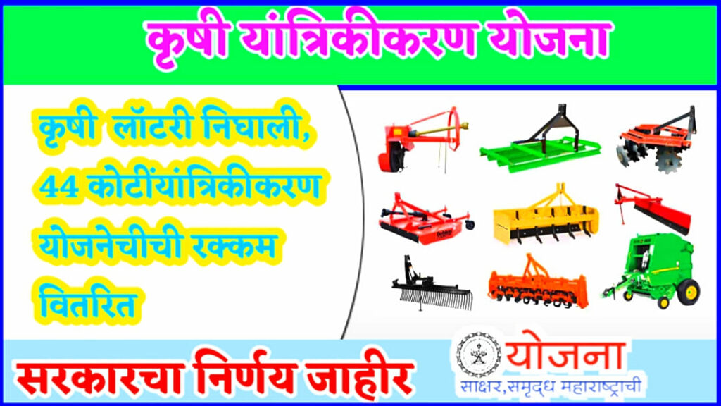 कृषी यांत्रिकीकरण योजना कृषी यांत्रिकीकरण योजना: नमस्कार मित्रांनो, शेतकरी प्रामुख्याने शेती आणि मशागतीसाठी पेरणी, नांगरणी, चर यासाठी ट्रॅक्टरचा वापर करतात. त्यामुळे शेतकरी ट्रॅक्टरला पेरणी यंत्र आणि ट्रॅक्टरला नांगरणी यंत्र अशी वेगवेगळी यंत्रे जोडून आपल्या शेतात मशागत करतात. त्यासाठी राज्य सरकारने कृषी यांत्रिकीकरण योजनाही लागू केली आहे. तर मित्रांनो, कृषी यांत्रिकीकरण योजनेसाठी सरकारने 44 कोटी रुपये … Continue reading Farm Mechanization Scheme : कृषी लॉटरी निघाली, 44 कोटींयांत्रिकीकरण योजनेचीची रक्कम वितरित, सरकारचा निर्णय जाहीर